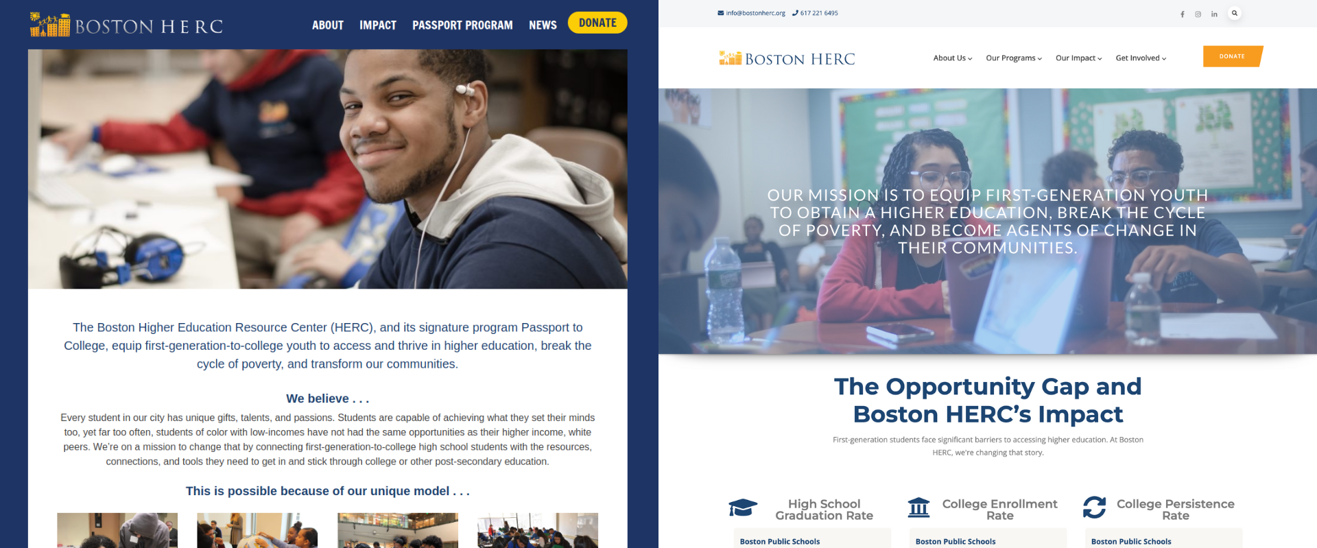 Looking through their existing site statistics, old and new content, and chatting with their team, I realized this wasn’t just about updating copy and swapping out photos. Boston HERC needed their digital presence to reflect their empowering, student-first approach to supporting first-generation college students.